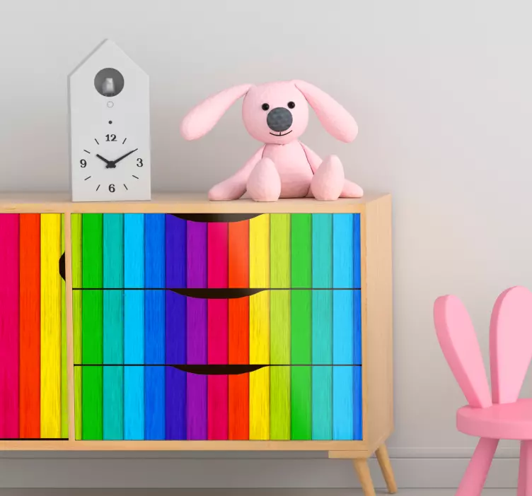 Entdecken Sie die faszinierende Welt der Aufkleber formen mit lebendigen vertikalen linien, die mit ihrem einzigartigen Design aus Holz, Holzoptik und Regenbogen-Farben jeden Raum zum Leben erwecken. Die Mehrfarbigen Streifen und das beschwingte, abstrakte Muster vermitteln eine fröhliche Atmosphäre und bringen frischen Wind in Ihre Wohnwand und Möbel. Diese Aufkleber sind nicht nur dekorativ, sondern auch funktional und verleihen jedem Raum eine individuelle Note!