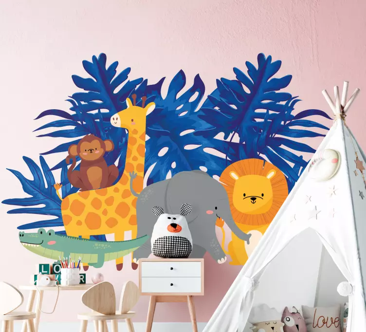 Dieses Aufkleber-Set bestehend aus Dschungeltieren und Monsterablättern ist ein wunderschönes Design für die Dekoration des Kinderzimmers. Es schafft einen erstaunlichen Raum, der die Fantasie Ihres Kindes anregt.