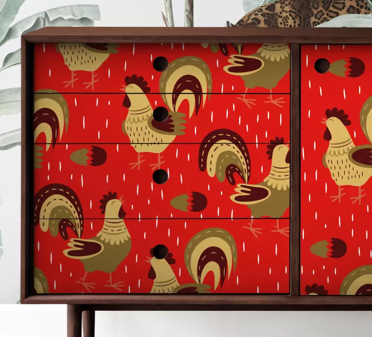 Referenz: A51644Ein Lebhaftes Design mit Verspielten Hähnen, die ihre Charmanten Formen vor einem Auffälligen Roten Hintergrund präsentieren. Dieses Fröhliche Motiv verleiht jedem Raum eine Lebendige Note und feiert den Rustikalen Charme des Landlebens. Die Wiederholenden Figuren betonen Wärme und Verspieltheit, perfekt für eine Verspielte Atmosphäre.