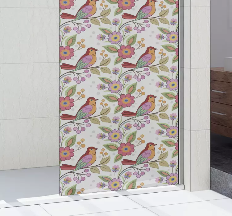 Folie duschwand mit buntem vogelmuster