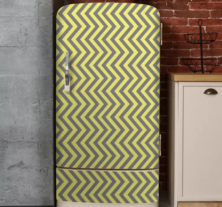 Verleihen Sie Ihrem Kühlschrank mit unserem Folie Kühlschrank chevron inspiriertes cover einen frischen und modernen Look! Das Design besticht durch farbenfrohe Zickzack-Streifen, die in einem dynamischen Muster angeordnet sind und Ihrer Wohnkultur eine lebendige Note verleihen. Dieses stilvolle Cover ist nicht nur ein Blickfang, sondern auch eine praktische Lösung, um Ihren Kühlschrank zu schützen und aufzuwerten.