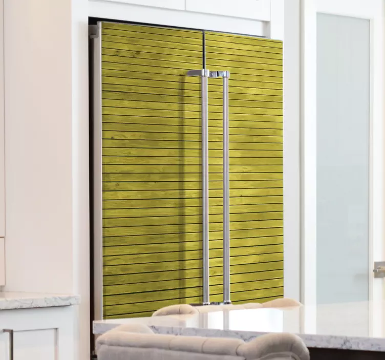 Entdecken Sie die faszinierende Folie Kühlschrank im Holzplanken-Look, die Ihre Küche in ein harmonisches und modernes Ambiente verwandelt! Dieses einzigartige Design kombiniert eine hölzerne Textur mit einem frischen grünen Farbton und gelben Akzenten, die an rustikale Wandbretter erinnern. Die Holzplanken sorgen für eine wohnliche Atmosphäre und bringen ein Stück Natur in Ihr Zuhause. Verleihen Sie Ihrem Kühlschrank eine ansprechende Optik, die sowohl funktional als auch dekorativ ist.
