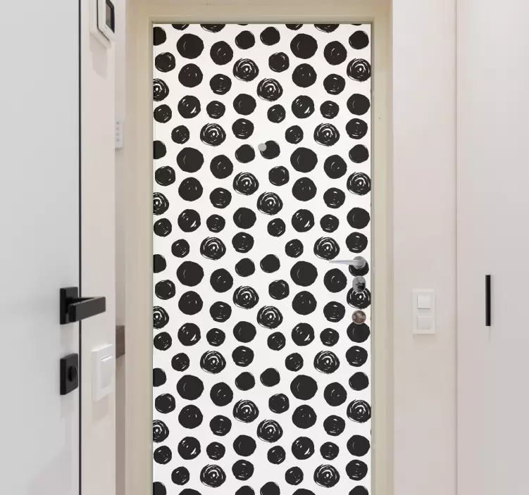 Entdecken Sie unseren einzigartigen Tür-Aufkleber mit einem kräftigen, kreisförmigen Muster, das Ihre Tür in ein wahres Kunstwerk verwandelt! Die Kombination aus schwarz und weiß in einem minimalistischen, geometrischen Design schafft eine faszinierende Atmosphäre in jedem Raum. Die irregulären Kreise und das punktmuster verleihen Ihrem Zuhause einen abstrakten Touch und ziehen alle Blicke auf sich!