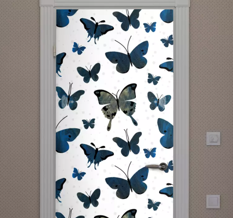 Verleihen Sie Ihrer Tür mit unserem Folie tür mit verschiedenen schmetterlingsmustern einen fröhlichen und lebendigen Look! Das Grafikdesign besticht durch seine blauen Blautöne und die Schmetterlinge, die von der Natur inspiriert sind. Diese dekorativen Elemente schaffen eine harmonische Atmosphäre in Ihrem Zuhause und machen jede Tür zu einem echten Hingucker!