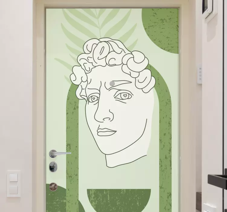 Verleihen Sie Ihrer Tür mit unserem Tür-Aufkleber im zeitgenössischen Design eine kreative Note! Dieses einzigartige Grafikdesign zeigt die David-Statue in minimalistischem Stil, kombiniert mit eleganten Strichzeichnungen und abstrakten Formen in beruhigenden Grüntönen. Es ist nicht nur ein Aufkleber, sondern ein Kunstwerk, das jedem Raum eine moderne Atmosphäre verleiht.