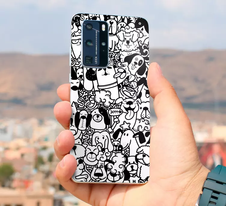 Entdecken Sie unseren Huawei Sticker mit verspielten hundemotiven, der Ihr Gerät in ein wahrhaftiges Kunstwerk verwandelt! Das Design zeigt charmante Hunde und süße Welpen, die mit ihren komischen Mustern jeden Betrachter zum Schmunzeln bringen. Diese schwarz-weißen Illustrationen sind perfekt geeignet, um Ihr Telefon zu individualisieren und ihm eine fröhliche Note zu verleihen. Verleihen Sie Ihrem Huawei mit diesem einzigartigen Aufkleber eine liebevolle Ausstrahlung!