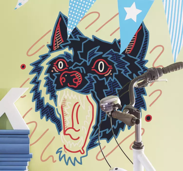 Referenz: A47966Eine auffällige Grafik eines heulenden Wolfs präsentiert kräftige Farben und dynamische Linien. Der wütende Ausdruck des Wolfs und die übertriebenen Merkmale schaffen eine verspielte, aber kraftvolle visuelle Darstellung, die perfekt ist, um jeden Raum zu beleben. Dieses Design fängt das Wesen von Wildheit und Geist ein und spricht Tierliebhaber und Fans einzigartiger Kunst an.