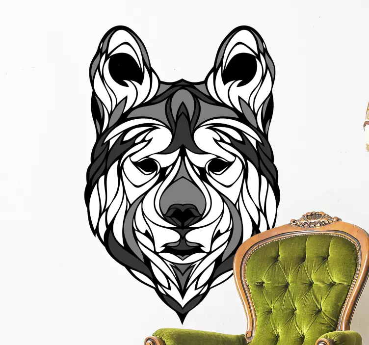 Entdecken Sie die faszinierende Welt unserer Katzen Sticker mit künstlerischem hunde kopf, die durch ein einzigartiges Design bestechen. Der Aufkleber zeigt ein gezeichnetes Porträt eines Wolfs in einem abstrakten Stil, das in stilvollem Schwarz und Weiß gehalten ist. Jedes Detail des Tieres wurde sorgfältig ausgearbeitet, um eine dekorative Wirkung zu erzielen, die in jedem Raum zum Hingucker wird!