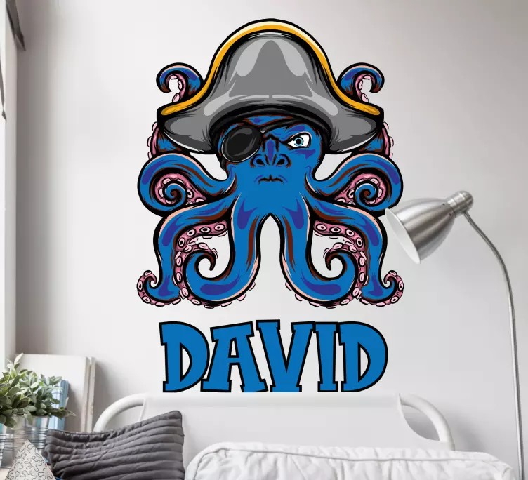 Entdecken Sie unseren einzigartigen Katzen Sticker piraten-oktopus charakter, der mit einem verspielten Design begeistert! Diese wunderliche Illustration zeigt eine charmante Krake im Piratenstil, die Ihren Raum auf kreative Weise verschönern kann. Mit einem benutzerdefinierten Namen haben Sie die Möglichkeit, diesen Sticker ganz nach Ihren Wünschen anzupassen. Die blaue Farbgebung fügt eine fröhliche Note hinzu und macht diesen Aufkleber zu einem echten Hingucker in jedem Zuhause.