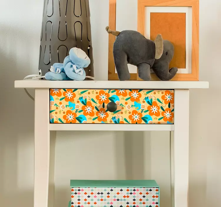 Klebefolie für Möbel mit orangefarbenen Blumen