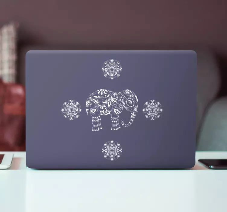Referenz: A49562Eine komplexe Darstellung eines Elefanten, umrahmt von dekorativen kreisförmigen Mustern. Dieses Design kombiniert Kunstfertigkeit mit Charme und verleiht der Laptop-Oberfläche eine einzigartige Persönlichkeit. Der Elefant symbolisiert Weisheit und Stärke, wodurch dieses Stück sowohl ansprechend als auch bedeutungsvoll ist.