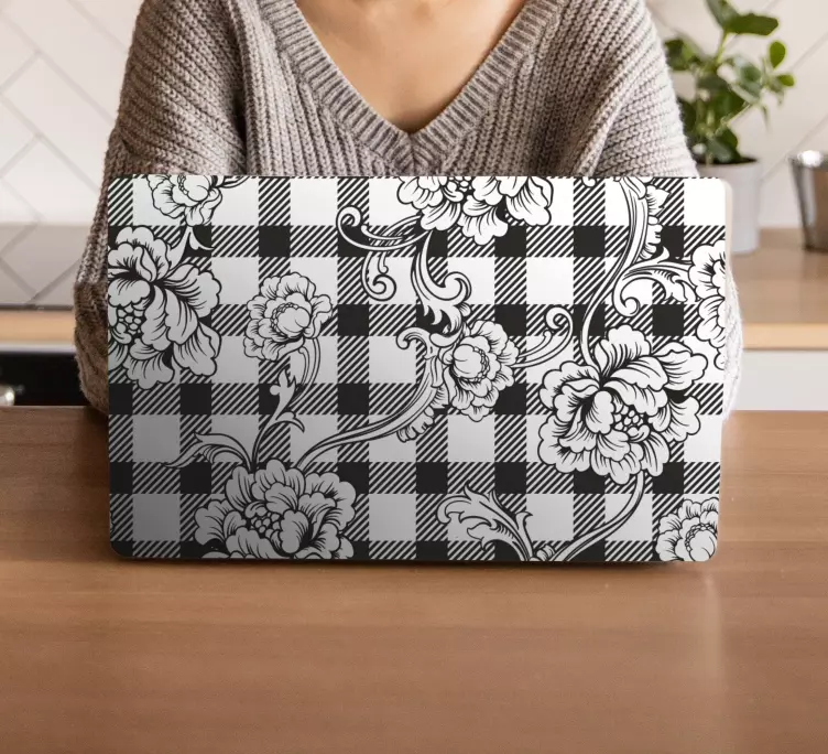 Der Laptop Aufkleber mit floralem karierten Muster verbindet kunstvolle Blumen mit einem modernen karierten Design, das Ihrem Laptop eine elegante Note verleiht. Sein einzigartiges Muster in Schwarz und Weiß schafft eine ansprechende Textur, die sowohl stilvoll als auch zeitlos ist. Dieser Aufkleber ist die perfekte Möglichkeit, um Ihre Persönlichkeit auszudrücken und Ihrem Gerät eine individuelle Note zu verleihen!
