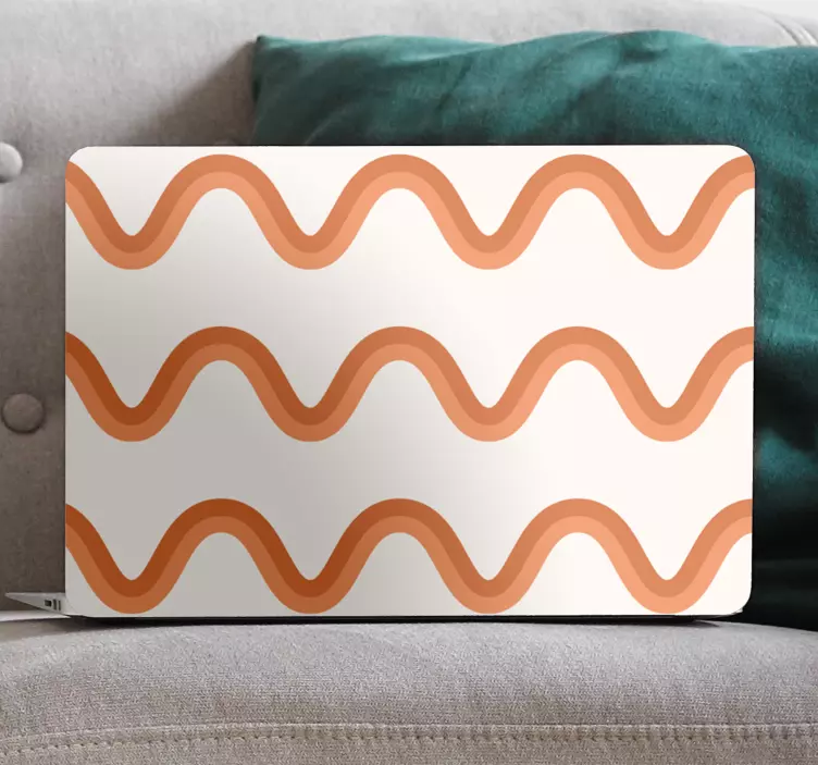 Entdecken Sie unseren Laptop Aufkleber mit wellenförmigem Muster, der mit seinem einzigartigen Design begeistert! Die orange Farbe kombiniert mit einem 70er-Jahre Flair verleiht Ihrem Laptop einen modernen und zugleich minimalistisch anmutenden Look. Die wellig gestalteten, gebogenen Striche und geometrischen Muster bringen eine abstrakte Note in Ihre digitale Welt und machen jeden Laptop zu einem echten Hingucker.