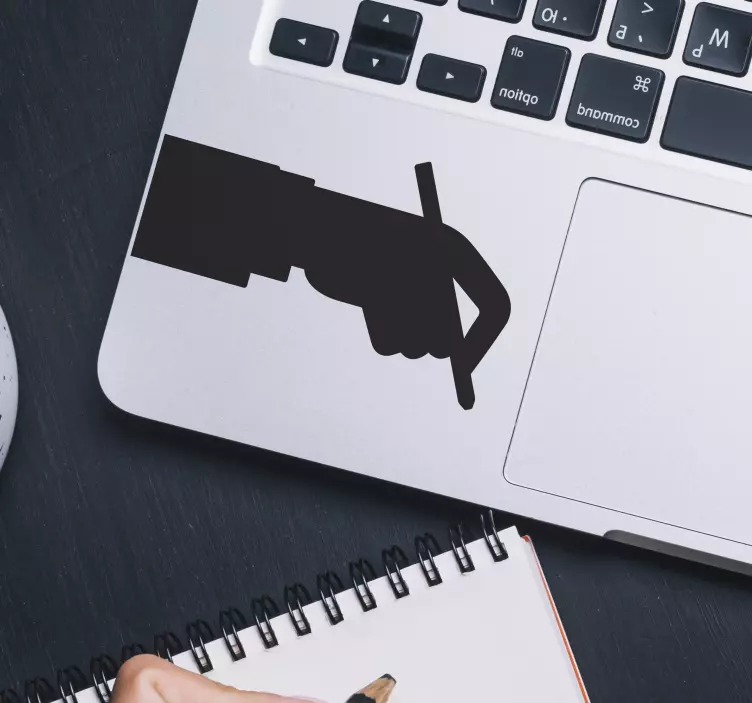 Laptop sticker hand mit bleistift