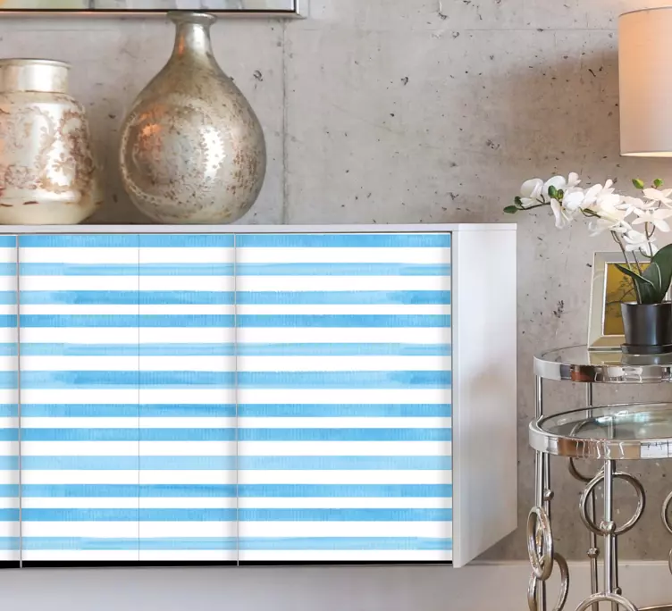 Die Möbelfolie mit blauem streifenmuster bringt frischen Wind in Ihr Zuhause! Das moderne Design kombiniert elegante Streifen mit lebhaften Blautönen, die sich harmonisch zu einem strukturierten Gesamteindruck fügen. Die Pinselstriche verleihen der Folie eine künstlerische Note, die perfekt für die kreative Inneneinrichtung geeignet ist. Ob im Wohnzimmer, Schlafzimmer oder Büro, diese Folie wird zum Blickfang und verleiht jedem Möbelstück eine stilvolle Ausstrahlung!