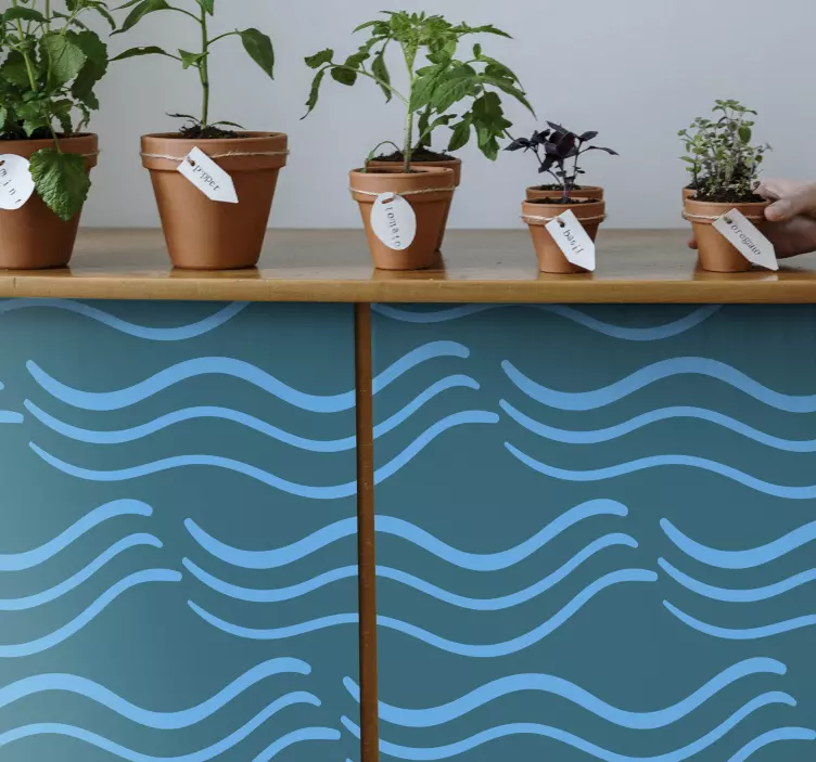 Die Möbelfolie mit fließenden aqua-mustern ist ein faszinierendes Designelement für Ihr Zuhause, das mit wellenförmigen Linien in verschiedenen Blautönen begeistert. Diese Kombination aus sanften Wellen und lebendigen Mustern verleiht Ihren Möbeln eine frische und einladende Atmosphäre, die harmonisch mit Pflanzen und Töpfen harmoniert. Die Möbelfolie mit fließenden aqua-mustern ist nicht nur ein Blickfang, sondern auch ein Statement für ein stilvolles Zuhause.