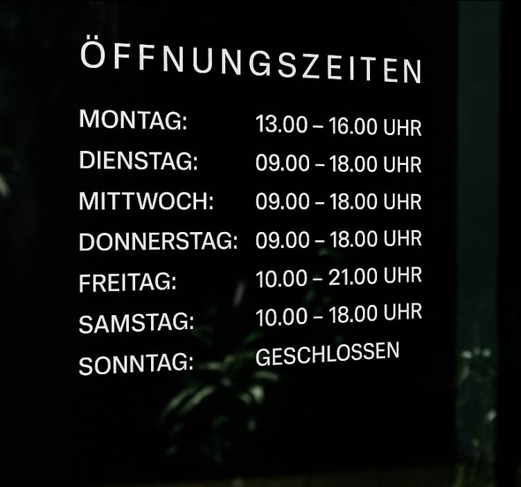 Schaufenster Folie Öffnungszeiten
