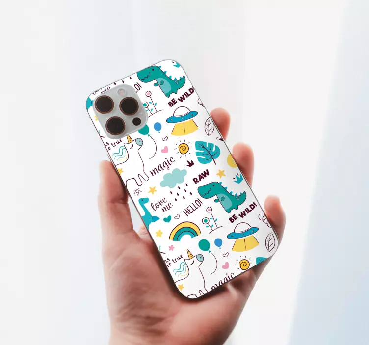 Entdecken Sie unseren einzigartigen Sticker iPhone mit verspielten kreaturenmustern, der Ihr Smartphone in eine fantasievolle Welt voller Farben und Magie verwandelt! Mit zauberhaften Designs von Dinosauriern und Einhörnern ist dieser Aufkleber nicht nur niedlich, sondern bringt auch einen Hauch von kindlicher Freude in Ihren Alltag. Lassen Sie sich von den lebhaften Mustern verzaubern und machen Sie Ihr Telefon zum Blickfang!
