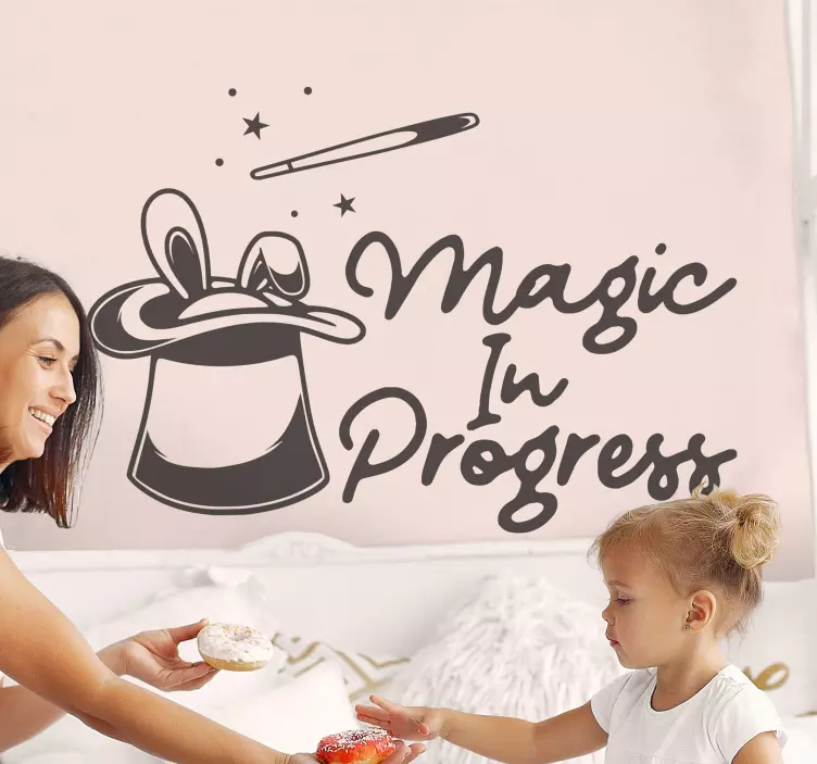 Referenz: A46987Eine bezaubernde Szene mit einem Zauberhut, der mit verspielten Elementen wie Sternen und einem Zauberstab geschmückt ist, ideal für die Inspiration von Kreativität. Der Satz 'Magic In Progress' fügt einen verspielten Touch hinzu und fängt die Freude der kindlichen Fantasie ein. Perfekt für einen fröhlichen Raum.
