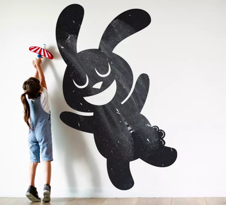 Verleihen Sie Ihrem Raum mit unserer Tafelfolie mit fröhlichem hasenmotiv einen spielerischen und humorvollen Touch! Das Design zeigt einen glücklichen Hasen in einer wunderlichen Silhouette, perfekt für Kinderzimmer. Die lächelnde Karikatur bringt Freude und Fröhlichkeit in jeden Raum, während sie gleichzeitig eine kreative Fläche zum Schreiben und Zeichnen mit Kreide bietet!