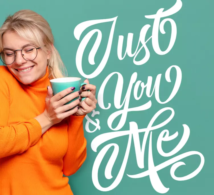 Entdecken Sie unseren einzigartigen Text Aufkleber du und ich, der mit seiner modernen und dekorativen Kalligraphie begeistert. Das Design vereint die Worte Sie, mich und Liebe in einer ansprechenden Typografie, die ein Gefühl von Verbundenheit und Zuneigung vermittelt. Dieser Aufkleber ist nicht nur ein Blickfang, sondern auch eine wunderbare Möglichkeit, Ihre persönlichen Räume mit einem liebevollen Zitat zu verschönern!