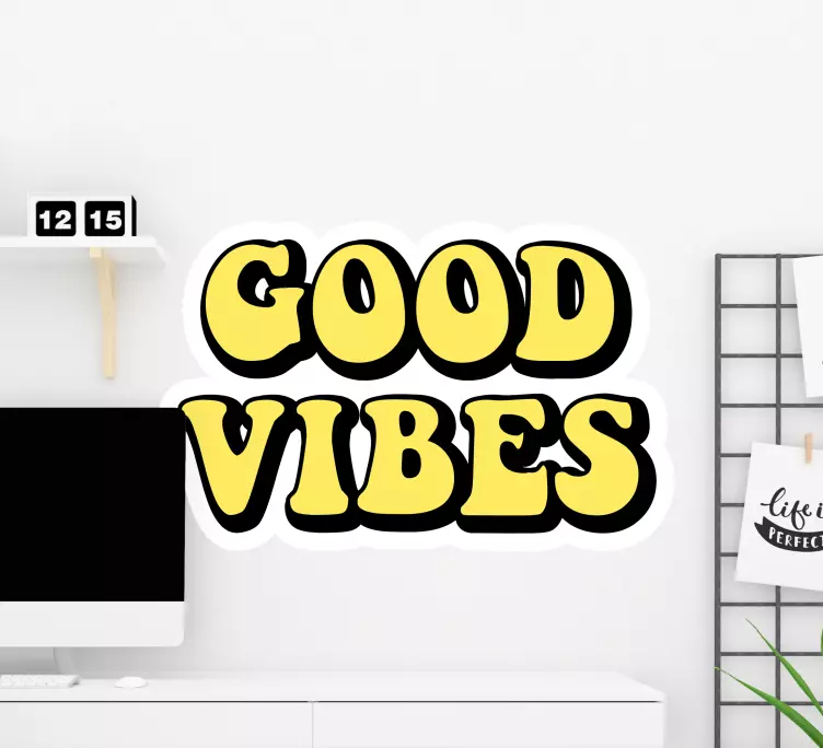Referenz: A51435Dieses Design präsentiert einen fröhlichen Satz, der Positivität und Wärme ausstrahlt. Die lebendigen Farben und der verspielte Schriftstil schaffen eine aufmunternde Atmosphäre, die perfekt ist, um jeden Raum zu beleben und eine freudige Denkweise zu fördern.