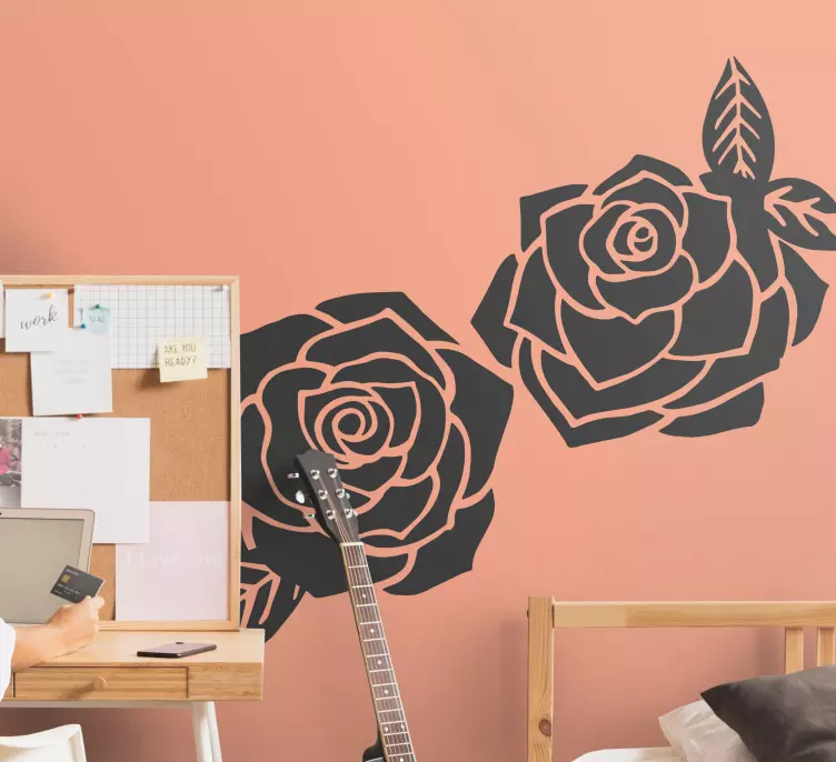 Verleihen Sie Ihrem Raum mit unserem Wandtattoo Blumen elegantes rosenbouquet einen Hauch von Natur und Eleganz! Das Design zeigt eine stilvolle Silhouette von Rosen und Blättern, die harmonisch in einem eleganten Schwarz gehalten ist. Die sanften Formen der Blumen bringen die Schönheit der Natur direkt in Ihr Zuhause und schaffen eine einladende Atmosphäre.