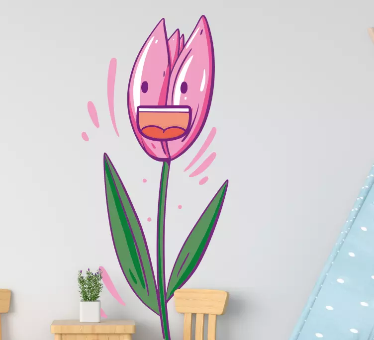 Referenz: A48225Eine ansprechende Darstellung einer fröhlichen Tulpe, die durch markante Gesichtsausdrücke und lebendige Farben besticht. Die heitere Ästhetik schafft eine unbeschwerte Atmosphäre und ist perfekt für einen lebhaften Raum. Dieses Design weckt Gefühle von Glück und Wärme und spricht sowohl Kinder als auch Erwachsene an.