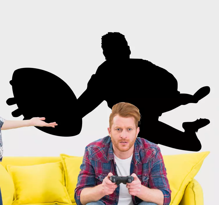 Das Wandtattoo Fußball energetischer Fußballspieler begeistert durch sein dynamisches Design. Die kraftvolle Silhouette eines Rugbyspielers in Aktion, der einen Fußball mit voller Energie kickt, vermittelt sofortige Begeisterung für den Sport. Die Bewegung und der Schwung des Spielers fangen die Leidenschaft für Fußball auf einzigartige Weise ein und machen dieses Wandtattoo zu einem Blickfang in jedem Raum.