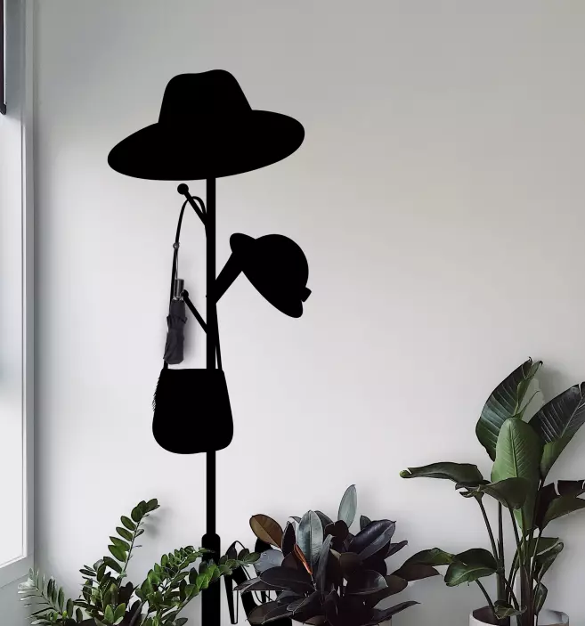 Referenz: A51372Dieser elegante, moderne Hutständer präsentiert stilvolle Silhouetten verschiedener Kopfbedeckungen und einer modischen Handtasche. Er ist so gestaltet, dass er Ihre Lieblingsaccessoires organisiert und zur Schau stellt, und bringt sowohl Funktionalität als auch Raffinesse in Ihren Raum.