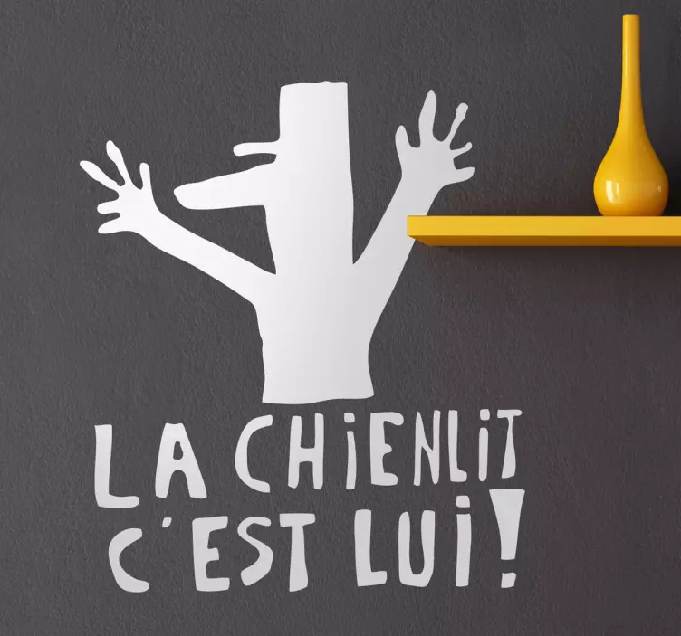 Referenz: A51776Ein verspieltes Design mit einem humorvollen Charakter, der die Hände hebt, begleitet von dem Text 'La chienlit c'est lui!'. Der Monochrom-Stil ermöglicht vielseitige Farbwahl und bringt ein lustiges Element in Kinderzimmer.