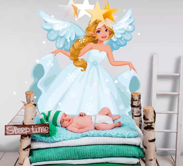 Verleihen Sie dem Kinderzimmer Ihrer Kleinen eine zauberhafte Atmosphäre mit unserem Wandtattoo Kinderzimmer fee mit flügeln. Das wunderschöne Design zeigt eine magische Fee mit schimmernden Flügeln, umgeben von funkelnden Schneeflocken, die die Fantasie der Kinder anregen. Diese wunderliche Dekoration ist ideal, um jeden Raum in ein märchenhaftes Reich zu verwandeln, in dem die Kinder träumen und spielen können.