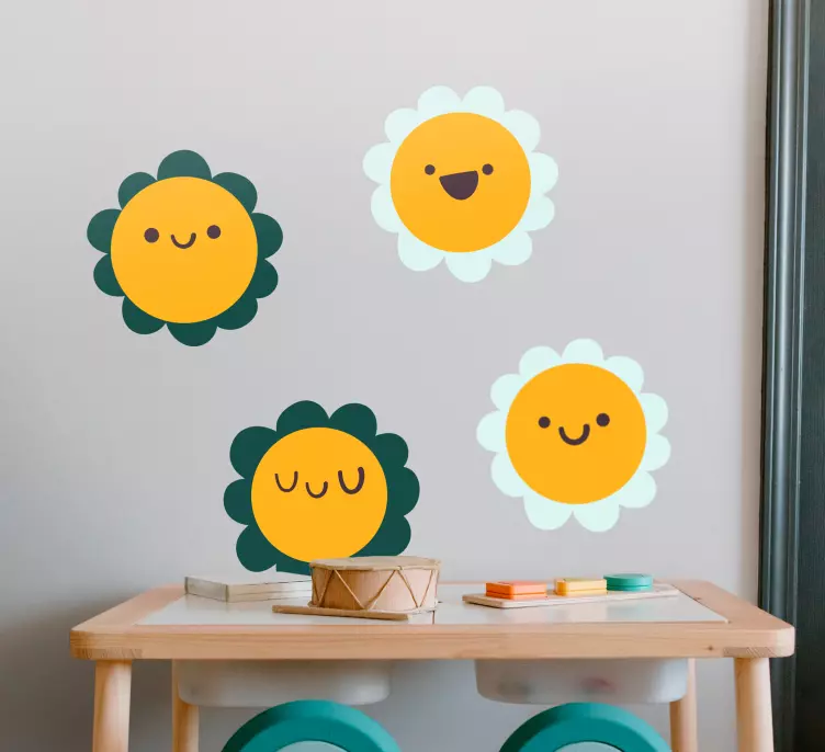 Referenz: A48406Helle und fröhliche Designs mit glücklichen Blumencharakteren. Jede Blume hat einen einzigartigen Ausdruck, der einem Raum ein Gefühl von Verspieltheit und Freude verleiht. Ideal für Kinderumgebungen, fördern diese Elemente Kreativität und eine warme Atmosphäre.