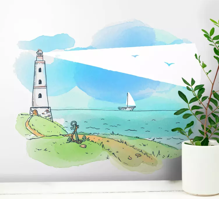 Referenz: A29448Wandtattoo Maritim Aquarell Leuchtturm - Eine schöne nautische Illustration