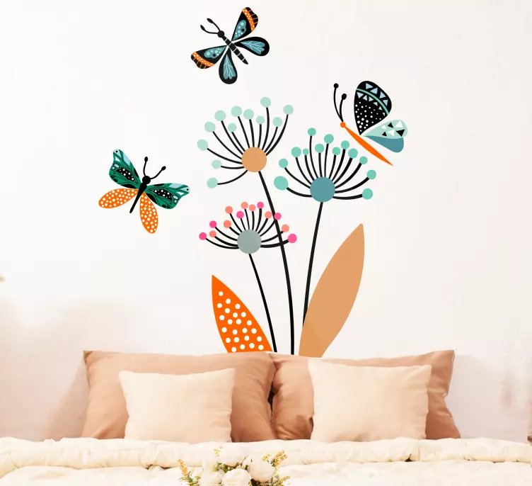 Verleihen Sie Ihrem Raum mit unserem Wandtattoo natur bunte blumen schmetterlinge eine fröhliche Note! Dieses bezaubernde Design kombiniert lebendige Blumen, Schmetterlinge und Blätter in harmonischer Anordnung, die das Gefühl von Natur und Leichtigkeit vermittelt. Die bunten Schmetterlinge und blühenden Blumen bringen eine wunderliche und beschwingte Atmosphäre in jeden Raum!