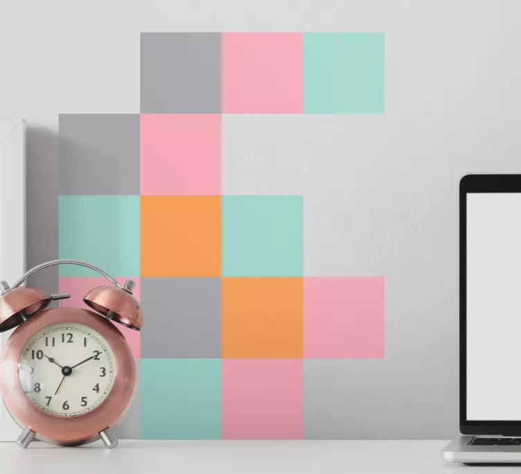 Referenz: A53373Eine lebendige Anordnung geometrischer Formen, die sanfte Pastellfarben in einer verspielten Konfiguration präsentiert. Dieses Design bereichert jeden Raum mit seinem auffälligen Aussehen und verbindet zeitgenössischen Stil mit künstlerischem Flair. Die Mischung aus Quadraten in unterschiedlichen Farbtönen schafft eine lebendige Atmosphäre, die perfekt ist, um einem Wandbild Interesse zu verleihen.