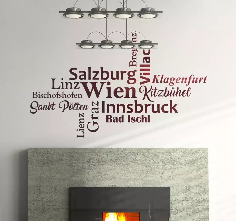 Geben Sie Ihre Bestellung online auf und erhalten Sie das Wandtattoo Österreich Städte innerhalb weniger Tage geliefert. So können Sie schon bald Ihr neues Wohnaccessoire bewundern.Dicke: 75–90 Mikrometer