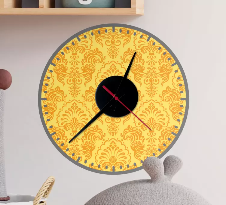 Das Wandtattoo Uhr elegantes blumenuhr design begeistert durch sein einzigartiges grafisches Design, das Damastmuster und elegante Blumen kombiniert. Die harmonische Farbgebung in Gelb bringt Frische in jeden Raum und verwandelt Ihre Wand in einen Blickfang. Die runde Form des Uhrenaufklebers sorgt dafür, dass die Uhr stilvoll in Szene gesetzt wird und gleichzeitig die Funktionalität einer Uhr erfüllt.
