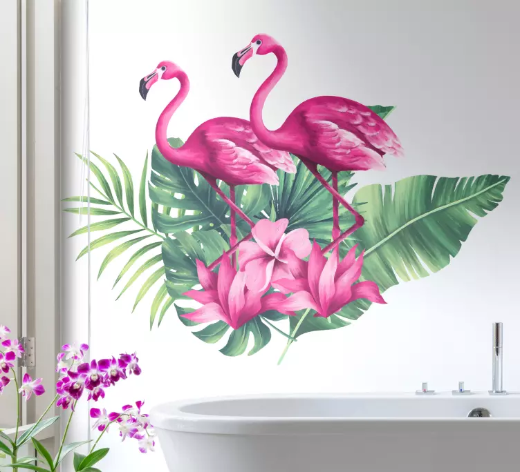 Wandtattoo vögel flamingos und laub