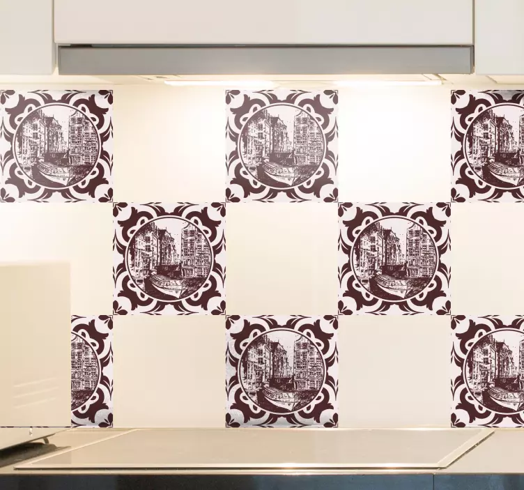 Referenz: A50950Mit einem charmanten Blick auf einen historischen Kanal fängt dieses Design das Wesen der vintage Europäischen Architektur ein. Die filigranen Details und die kreisförmige Rahmung schaffen eine einladende Atmosphäre, die perfekt ist, um jeden Innenraum mit einem Hauch von Nostalgie und Stil zu bereichern.