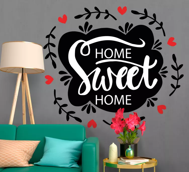 Referenz: A48557Der Ausdruck 'Home Sweet Home' ist wunderschön mit eleganter Typografie umgeben von charmanten Ranken und Herzen dargestellt. Dieser Ausdruck vermittelt Wärme und Komfort, perfekt um eine einladende Atmosphäre in jedem Wohnraum zu schaffen.
