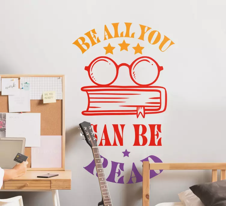 Referenz: A48091Inspirierende Aussage, die die Bedeutung des Lesens betont. Ein Buch mit Brille und Sternen hervorhebend, motiviert es Einzelne, die Lesefähigkeit und das Wissen zu umarmen, was eine positive Einstellung zur Bildung widerspiegelt.