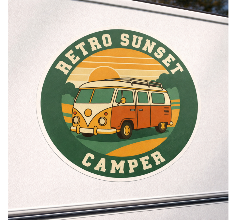 Ein Wohnmobil Aufkleber Retro Sonnenuntergang Camper ist die perfekte Möglichkeit, um Ihrem Wohnwagen eine persönliche Note zu verleihen! Er bringt nicht nur Farbe und Leben in Ihre Reisen, sondern kann auch dazu beitragen, dass Ihr Wohnwagen auf überfüllten Campingplätzen hervortritt. Gestalten Sie Ihre Reisen mit einem Hauch von Vintage-Charme und lassen Sie den Sonnenuntergang auf Ihrem Camper erstrahlen!
