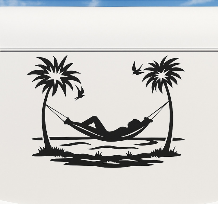 Referenz: A54326Entdecken Sie die Schönheit des Wohnmobil Aufkleber strandleben hängematte, der mit einem lebendigen Design begeistert! Dieser Aufkleber zeigt eine entspannte Hängematte, die zwischen zwei Palmen schwingt, und vermittelt sofort das Gefühl von Urlaub und Freiheit. Die satinierten Oberflächen sorgen dafür, dass keine störenden Reflexionen auftreten, während gleichzeitig die Farben leuchtend und intensiv bleiben. Genießen Sie die Möglichkeit, Ihren Wohnwagen mit diesem einzigartigen Aufkleber zu verschönern und die Urlaubsstimmung überall zu verbreiten!