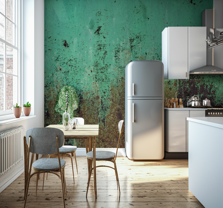 Unsere rostig grüne Wand Fototapete Texturen und Muster ist ein einzigartiges Design, das Ihrer Wand ein rustikales und industriell aussehendes Flair verleiht. Es wird Ihre Gäste begeistern und Ihre Räume aufwerten. Mit diesem Design können Sie Ihre Kreativität ausleben und Ihre Wand in einen einzigartigen Kunstwerksbereich verwandeln.