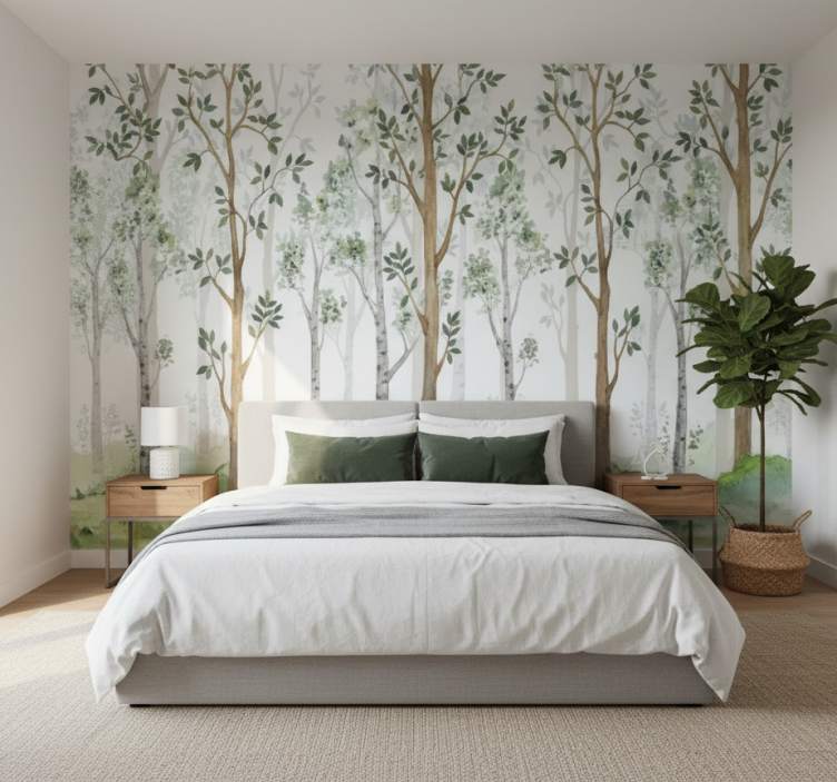 Die Fototapete Wald im minimalistischen botanischen Stil ist nicht nur ein ästhetischer Genuss, sondern auch eine Quelle der Inspiration. Sie verwandelt jeden Raum in eine ruhige Oase und fördert das Wohlbefinden. Das harmonische Design fügt sich nahtlos in moderne sowie klassische Einrichtungsstile ein. Das sanfte Farbspiel und die botanischen Motive schaffen eine beruhigende Atmosphäre, die zum Verweilen einlädt. Verleihen Sie Ihrem Zuhause mit dieser einzigartigen Tapete einen Hauch von Natur und Eleganz, die Ihre Wände zum Leben erweckt!