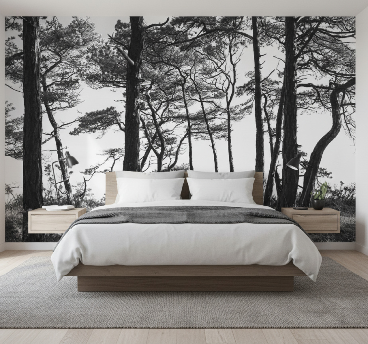 Die Anbringung der Fototapete Wald Tinte Kieferwald ist kinderleicht. Tragen Sie einfach den Klebstoff auf die Wand auf und verwenden Sie eine Rolle oder einen Pinsel, um die Tapete gleichmäßig zu positionieren. Mit einem Cutter können Sie die Kanten perfekt zuschneiden. So wird Ihre Wand im Handumdrehen zum Blickfang!