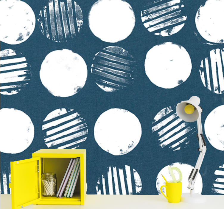Entdecken Sie die faszinierende Welt der Fototapeten Muster kreisförmige Textur, die mit ihrem einzigartigen Design aus Kreisen, Briefmarken und gestreiften Mustern Ihre Wände in ein minimalistisches Kunstwerk verwandeln. Die ansprechenden Blautöne und abstrakten Formen schaffen eine harmonische Atmosphäre, die sowohl beruhigend als auch inspirierend wirkt. Ob im Wohnzimmer, Schlafzimmer oder Büro, diese Tapete sorgt für einen frischen Wind in jedem Raum!