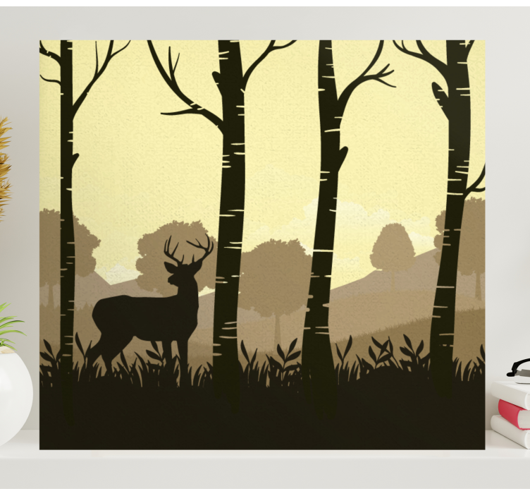Entdecken Sie die faszinierende Hirsch bild leinwand silhouette eines hirsches im wald, die die majestätische Tierwelt in einer atemberaubenden grafischen Darstellung einfängt. Dieses Design zeigt einen eleganten Hirsch, umgeben von schattigen Bäumen, saftigem Gras und lebhaftem Laub, das die Schönheit der Natur und die friedliche Atmosphäre des Waldes perfekt zur Geltung bringt. Die Silhouette des Hirsches vor dieser malerischen Landschaft erzeugt eine harmonische Verbindung zur Natur und lässt jeden Raum lebendig erscheinen!