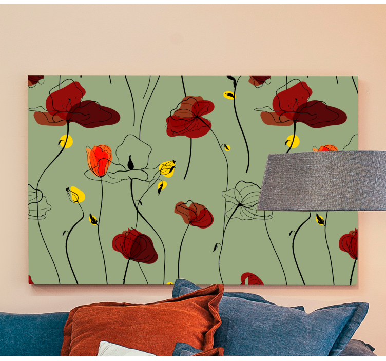Das Leinwandbild mit mohnblumenmotiv besticht durch sein modernes und minimalistisches Design. Die stilisierte Mohnblume erweckt die Wiese zum Leben und bringt die Blumenwiese in Ihr Zuhause. Mit lebendigen Farben und klaren Linien schafft diese Kunst eine harmonische Verbindung zur Natur und verwandelt jeden Raum in eine Oase der Ruhe. Die abstrakte Illustration der Blumen verleiht der Raumgestaltung einen frischen und einladenden Touch.